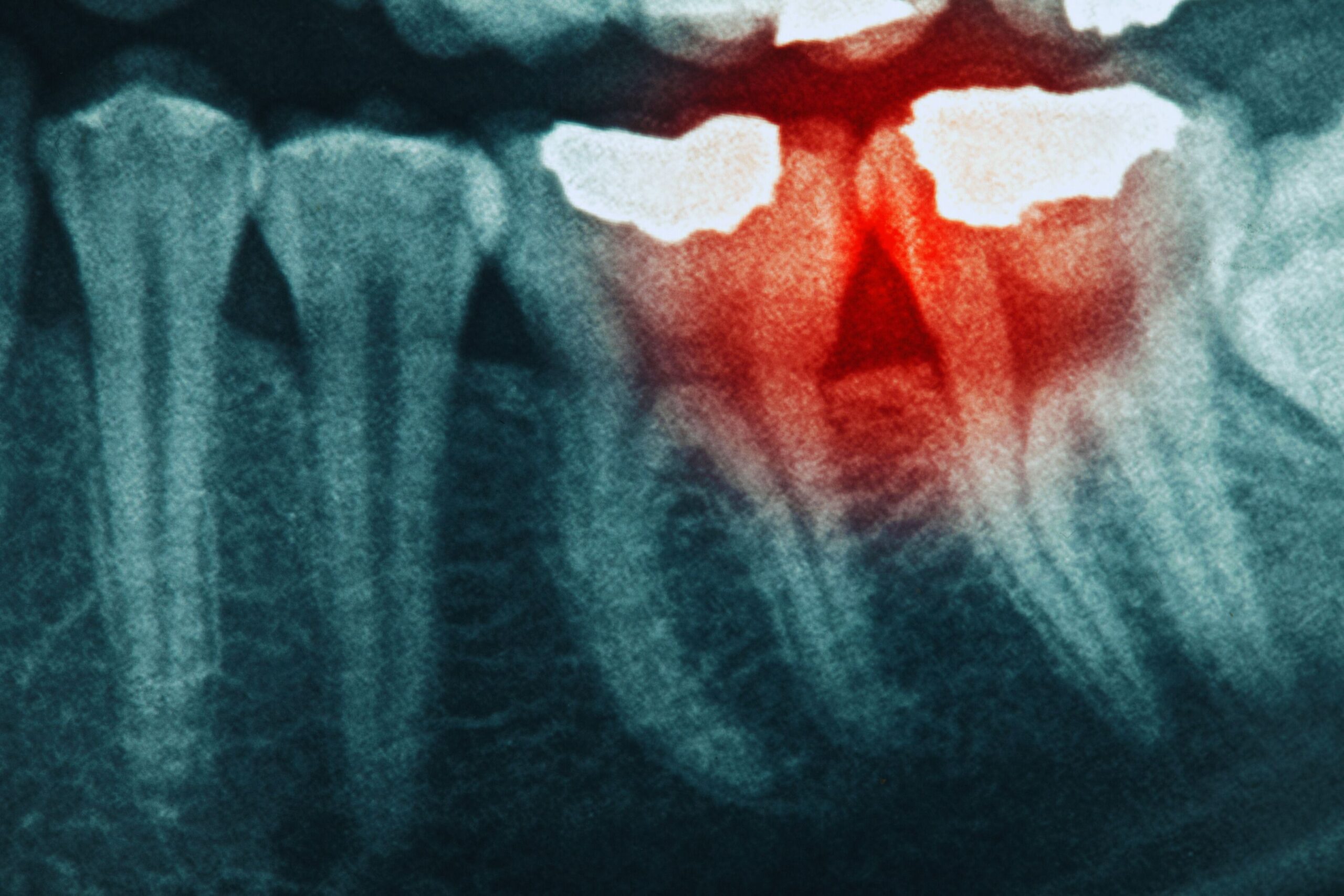 Periapical images focus on one tooth at a time and include the full root. They help us evaluate the health of the root and surrounding bone, detect abscesses, and identify infections that may involve the nerve of the tooth.